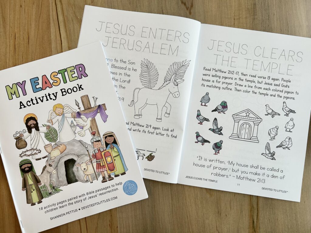 To help their hands stay busy and their hearts stay focused, we use the Easter Activity Book I created for this season. My kids love having something meaningful to do while I read. I love how the activities help the story settle more deeply into their minds.