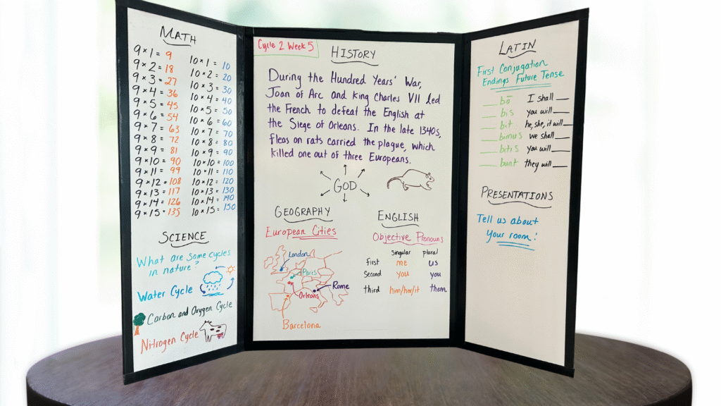 This year in Cycle 2, we’re learning about pre-Reformation to modern history, ecology, astronomy, and physics; Latin verb endings; English pronouns, adverbs, and conjunctions; skip counting, conversions, and more!